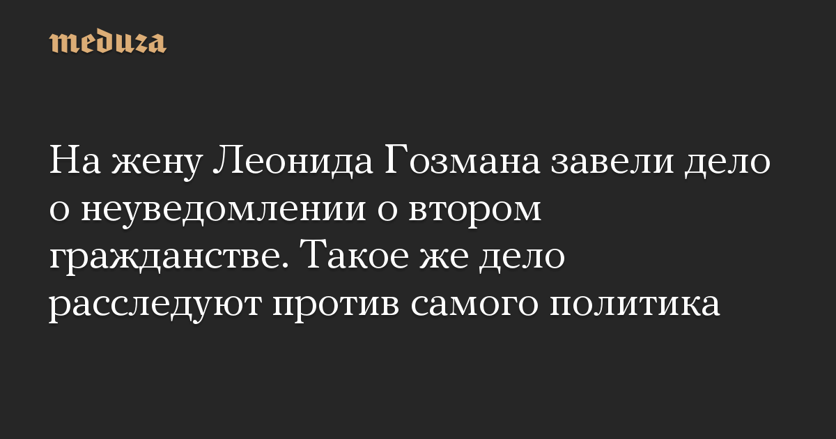 Политик Леонид Гозман сообщил, что против его жены возбуждено уголовное дело по статье о неуведомлении о втором гражданстве. Ранее такое же дело завели на него самого.