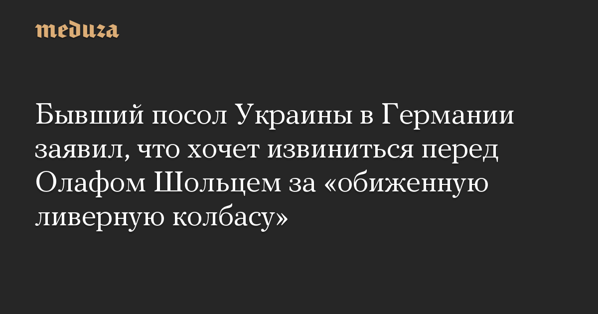 Бывший посол Украины в Германии заявил, что хочет извиниться перед Олафом Шольцем за «обиженную ливерную колбасу»