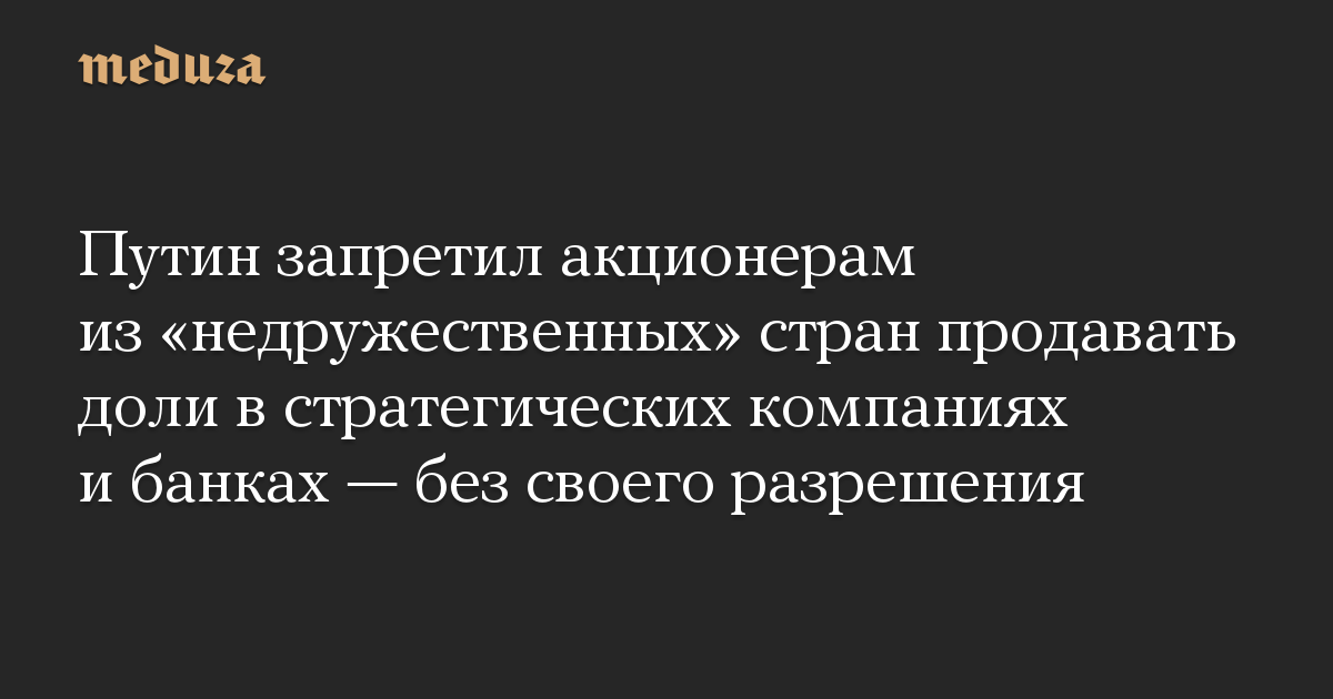 Путин запретил акционерам из «недружественных» стран продавать доли в стратегических компаниях и банках — без своего разрешения