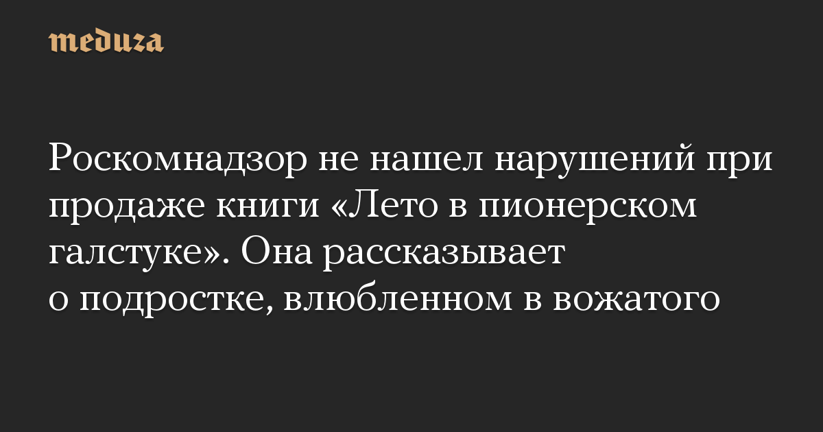 Роскомнадзор не нашел нарушений при продаже книги «Лето в пионерском галстуке». Она рассказывает о подростке, влюбленном в вожатого