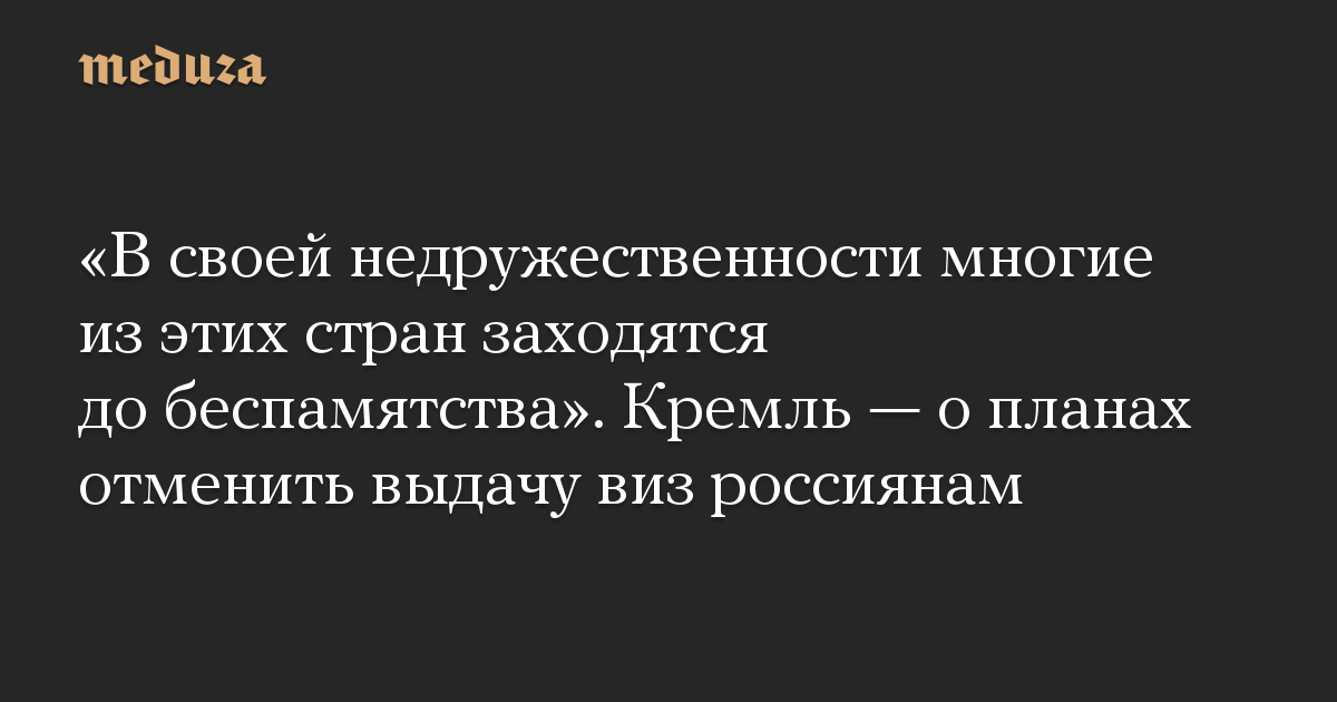 «В своей недружественности многие из этих стран заходятся до беспамятства». Кремль — о планах отменить выдачу виз россиянам