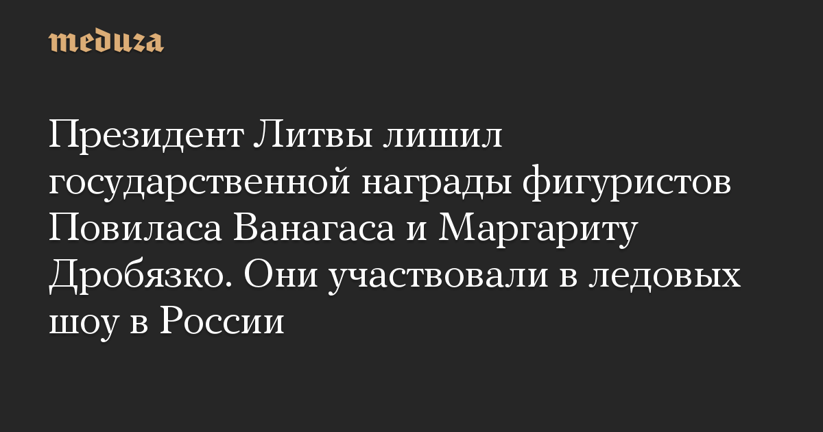 Президент Литвы лишил государственной награды фигуристов Повиласа Ванагаса и Маргариту Дробязко. Они участвовали в ледовых шоу в России