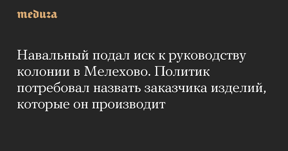 Навальный подал иск к руководству колонии в Мелехово. Политик потребовал назвать заказчика изделий, которые он производит