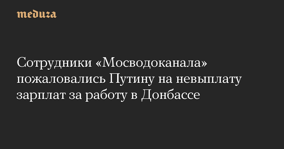 Сотрудники «Мосводоканала» пожаловались Путину на невыплату зарплат за работу в Донбассе
