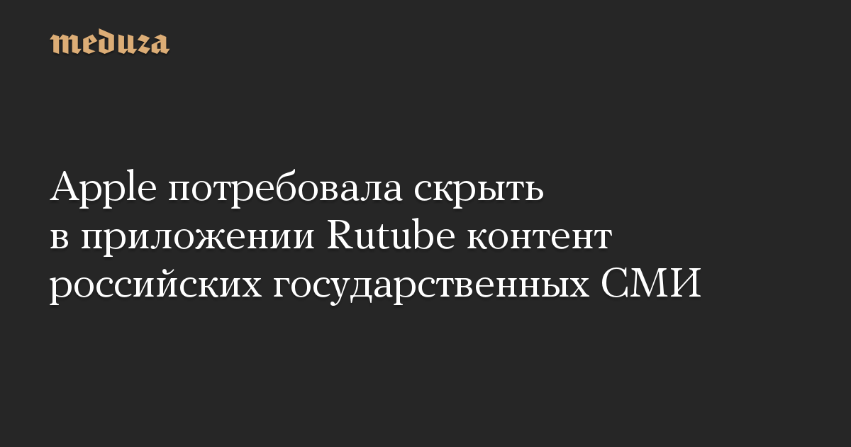 Компания Apple потребовала от Rutube скрыть материалы российских государственных СМИ в iOS-приложении видеохостинга или сделать их доступными только для российских пользователей. Об этом ТАСС рассказали в пресс-службе Rutube.