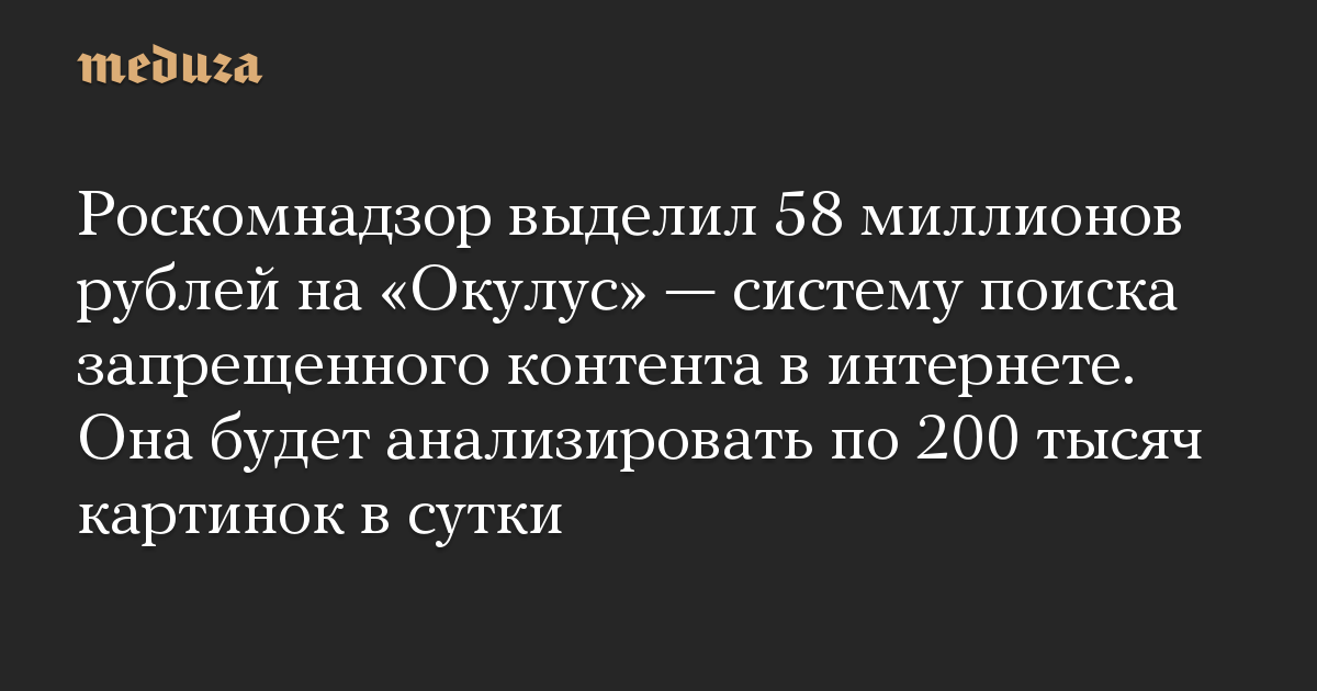 Роскомнадзор выделил 58 миллионов рублей на «Окулус» — систему поиска запрещенного контента в интернете. Она будет анализировать по 200 тысяч картинок в сутки