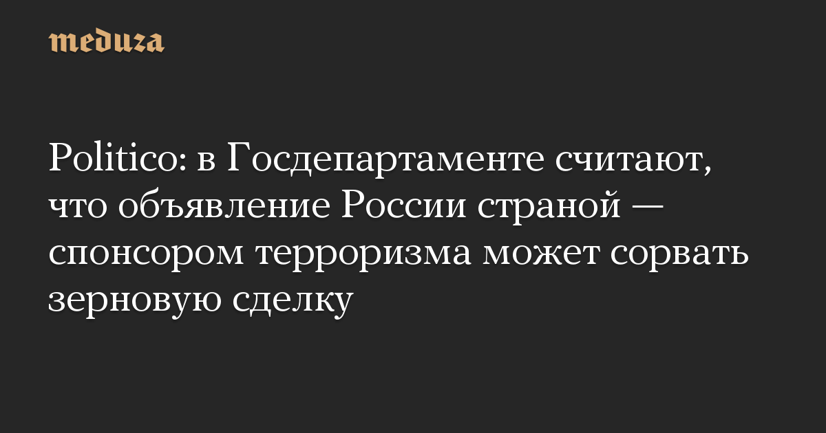 Politico: в Госдепартаменте считают, что объявление России страной — спонсором терроризма может сорвать зерновую сделку