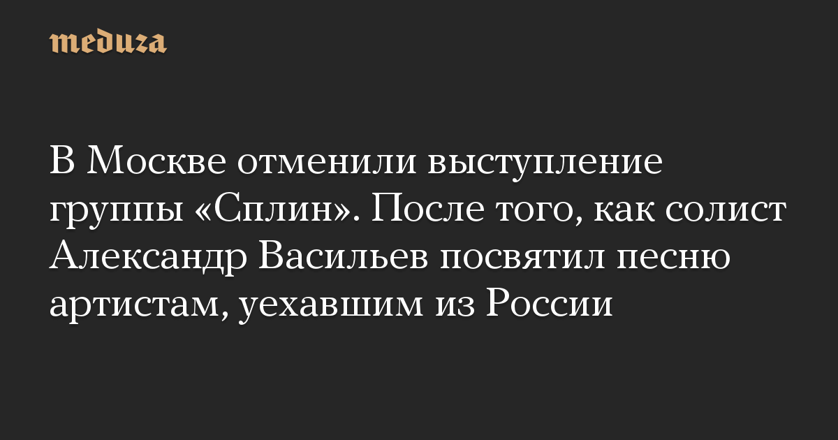 В Москве отменили выступление группы «Сплин». После того, как солист Александр Васильев посвятил песню артистам, уехавшим из России