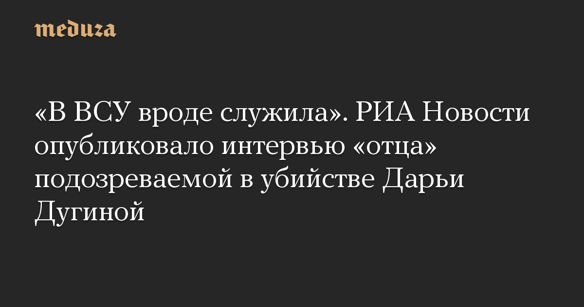 «В ВСУ вроде служила». РИА Новости опубликовало интервью «отца» подозреваемой в убийстве Дарьи Дугиной