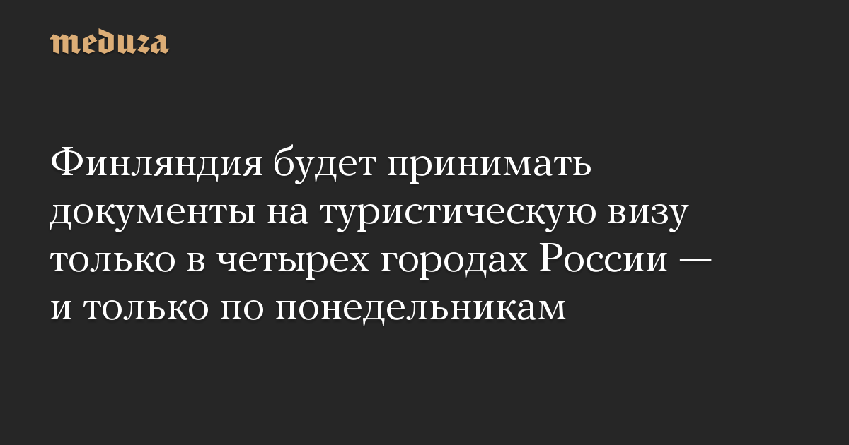 Финляндия будет принимать документы на туристическую визу только в четырех городах России — и только по понедельникам