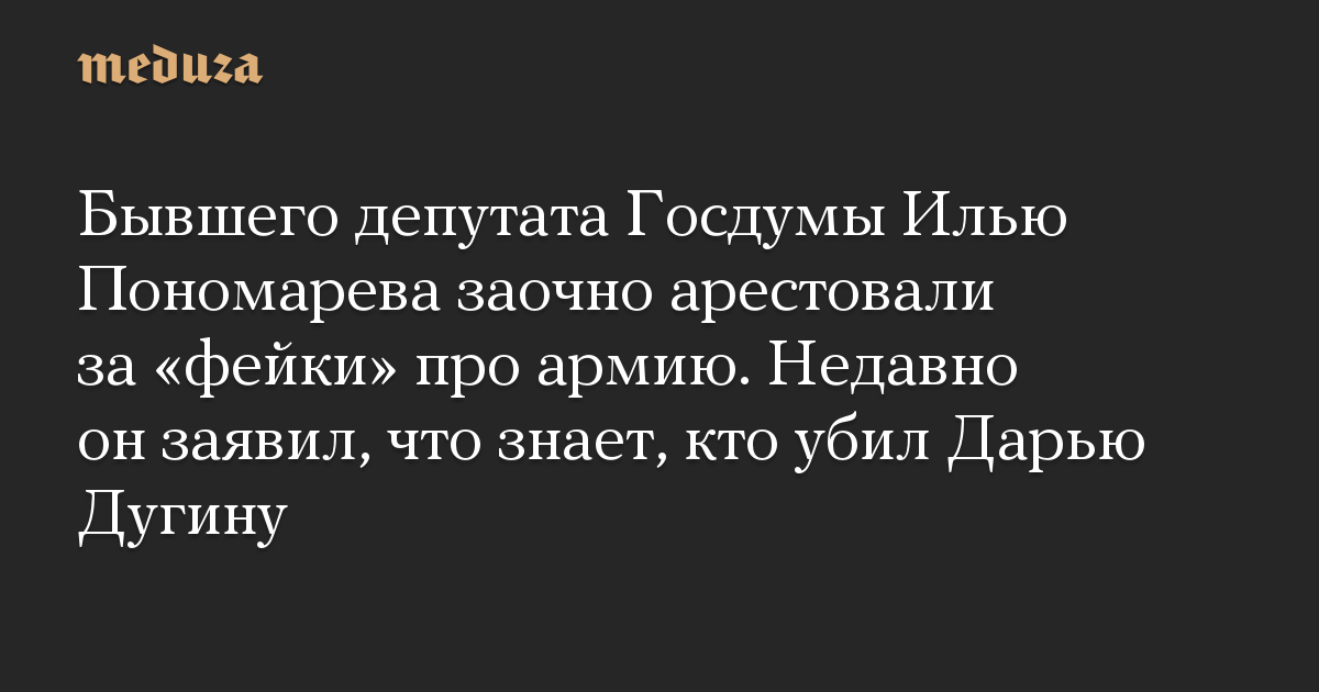 Бывшего депутата Госдумы Илью Пономарева заочно арестовали за «фейки» про армию. Недавно он заявил, что знает, кто убил Дарью Дугину