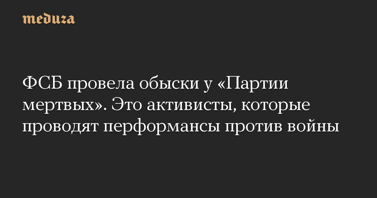 ФСБ провела обыски у «Партии мертвых». Это активисты, которые проводят перформансы против войны