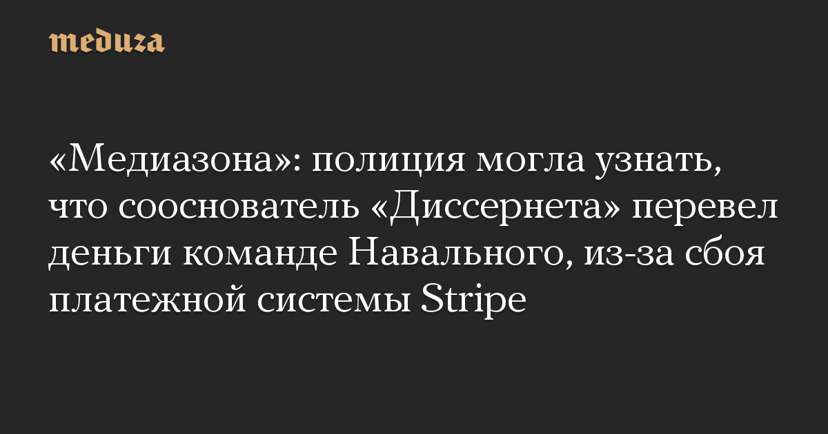 «Медиазона»: полиция могла узнать, что сооснователь «Диссернета» перевел деньги команде Навального, из-за сбоя платежной системы Stripe