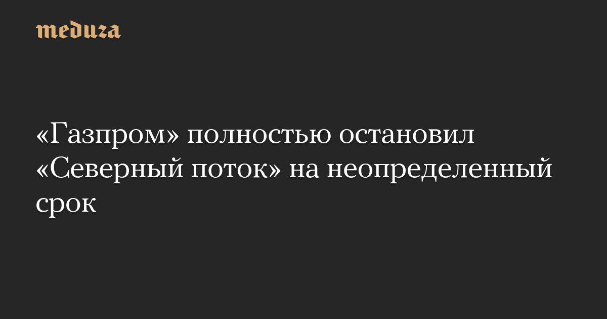 «Газпром» полностью остановил «Северный поток» на неопределенный срок