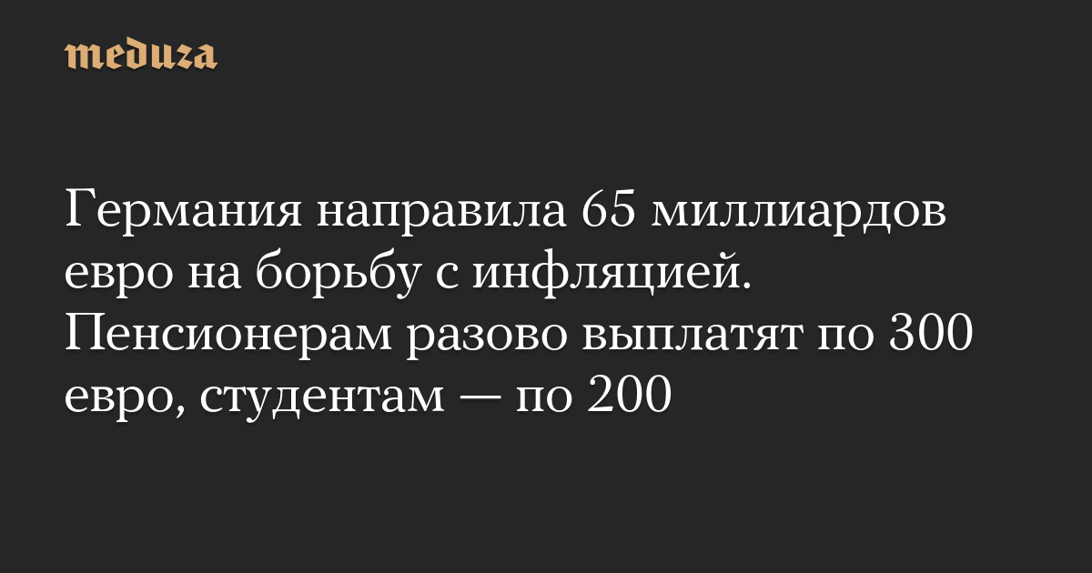 Германия направила 65 миллиардов евро на борьбу с инфляцией. Пенсионерам разово выплатят по 300 евро, студентам — по 200