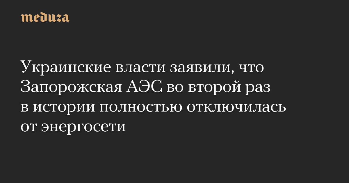 Украинские власти заявили, что Запорожская АЭС во второй раз в истории полностью отключилась от энергосети