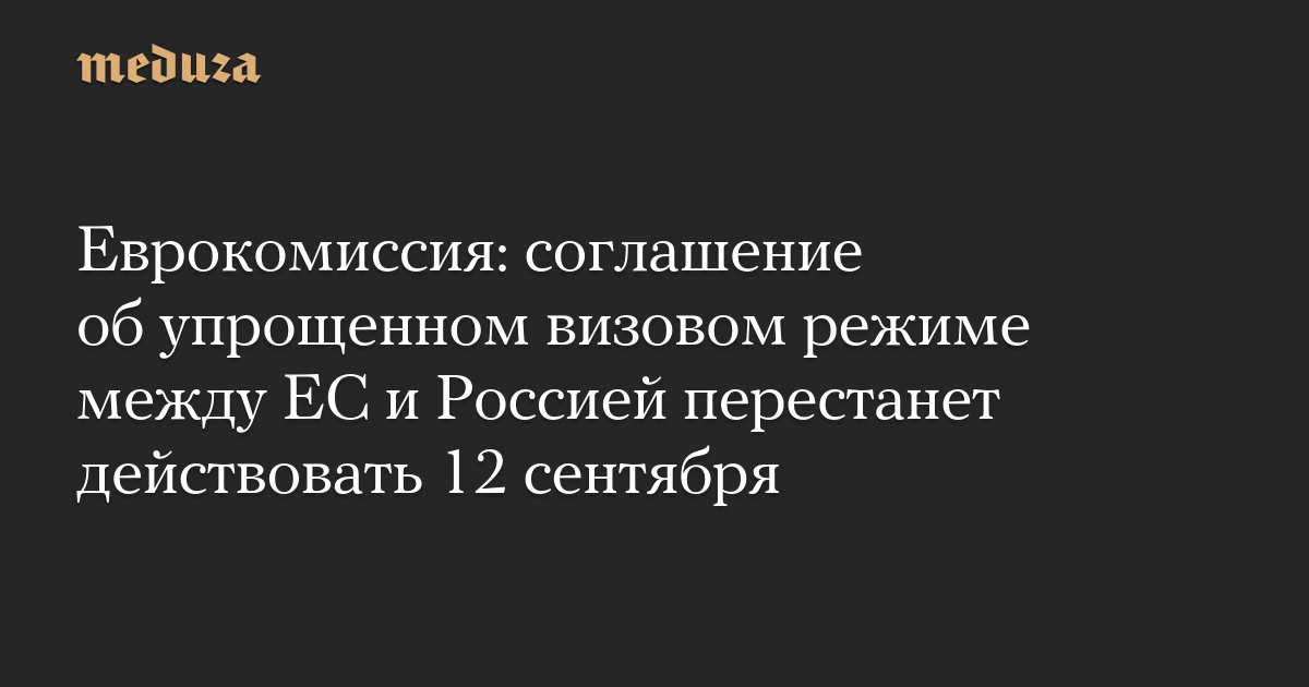 Еврокомиссия ожидает, что Совет ЕС в течение недели утвердит предложение о приостановке соглашения, и с 12 сентября между странами блока и Россией будет действовать новый визовый режим.