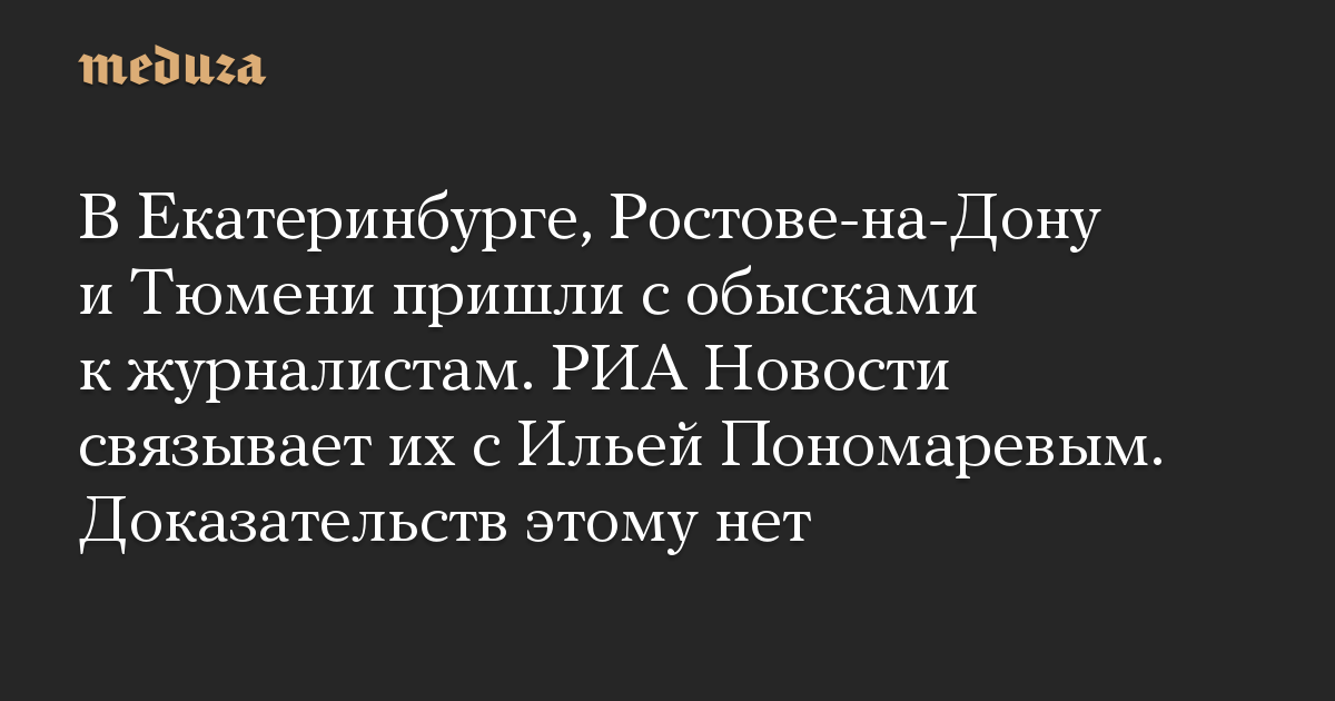 В Екатеринбурге, Ростове-на-Дону и Тюмени пришли с обысками к журналистам. РИА Новости связывает их с Ильей Пономаревым. Доказательств этому нет