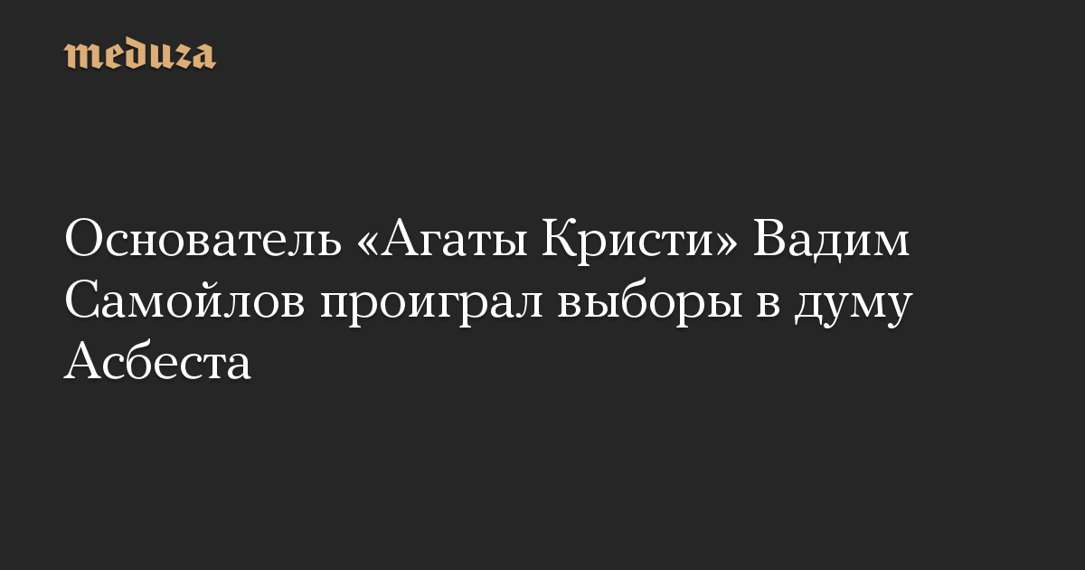 Российский музыкант, один из основателей рок-группы «Агата Кристи» Вадим Самойлов не сумел избраться депутатом городской думы Асбеста Свердловской области.