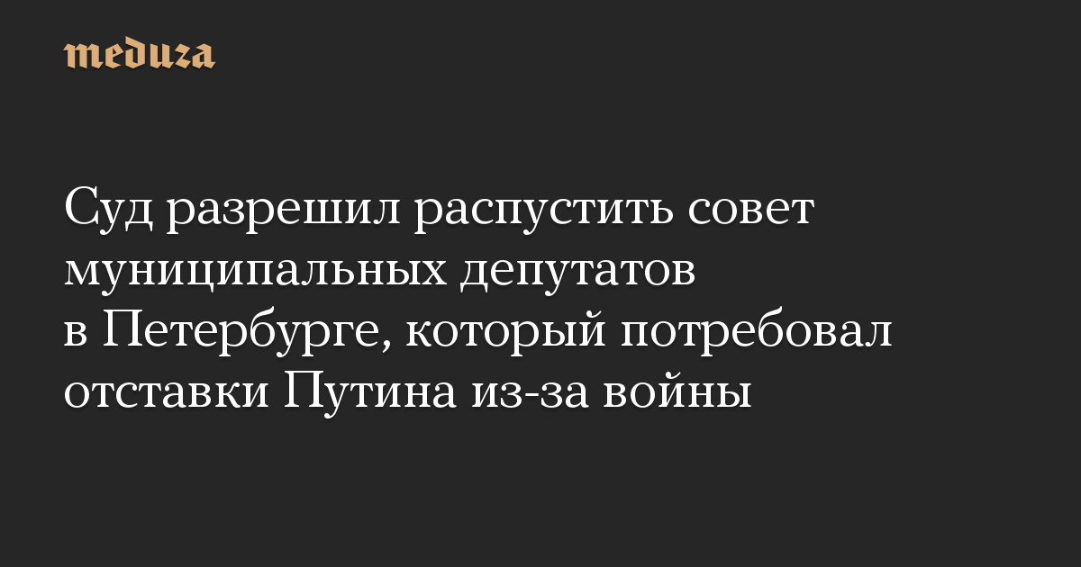 Суд разрешил распустить совет муниципальных депутатов в Петербурге, который потребовал отставки Путина из-за войны