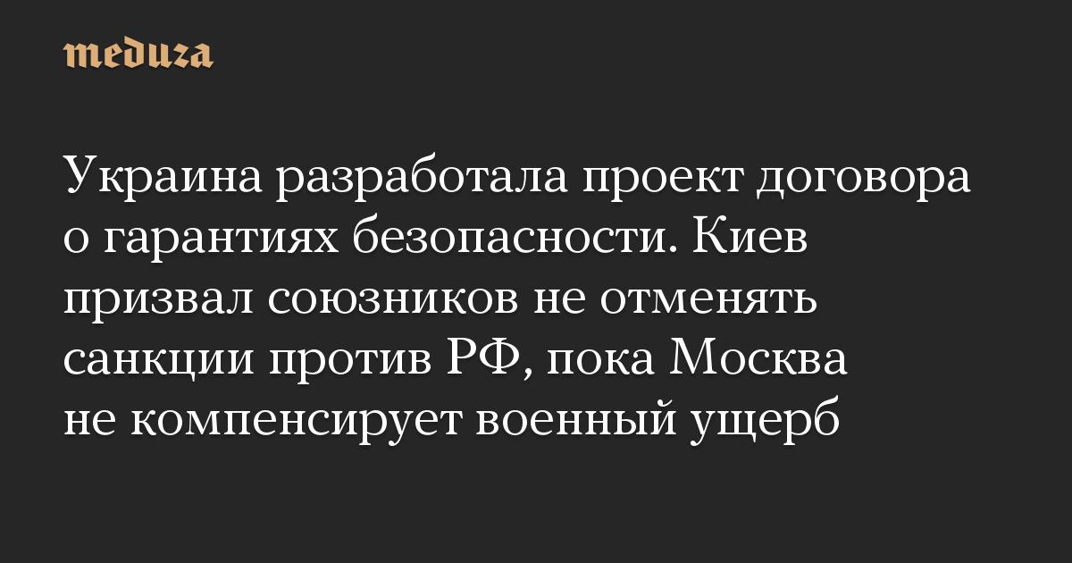 Украина разработала проект договора о гарантиях безопасности. Киев призвал союзников не отменять санкции против РФ, пока Москва не компенсирует военный ущерб