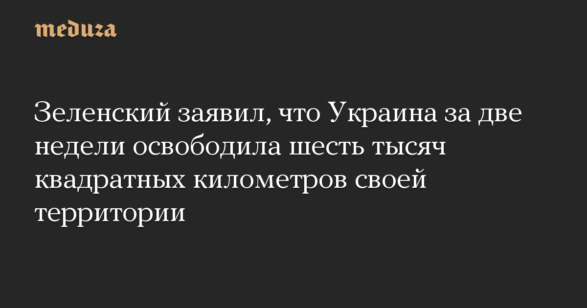 Зеленский заявил, что Украина за две недели освободила шесть тысяч квадратных километров своей территории