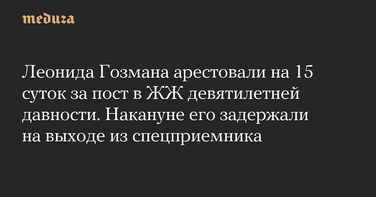 Леонида Гозмана арестовали на 15 суток за пост в ЖЖ девятилетней давности. Накануне его задержали на выходе из спецприемника