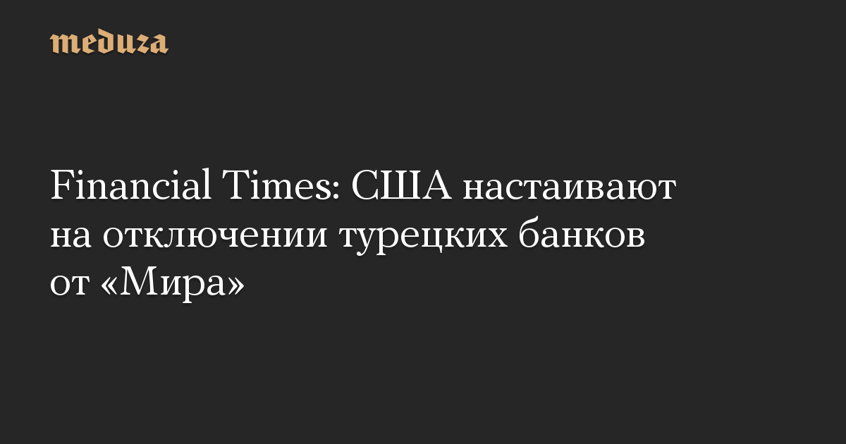 Financial Times: США настаивают на отключении турецких банков от «Мира»