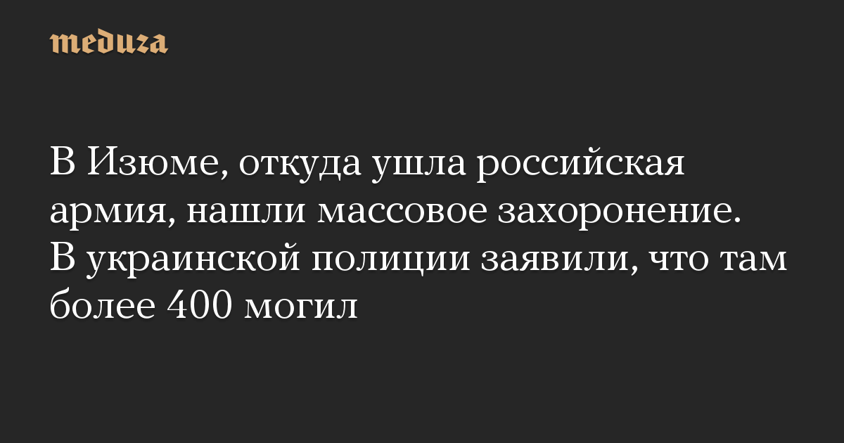 В Изюме, откуда ушла российская армия, нашли массовое захоронение. В украинской полиции заявили, что там более 400 могил