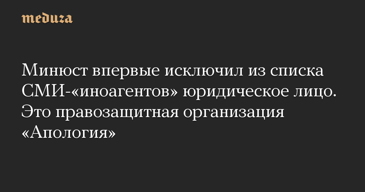 Минюст впервые исключил из списка СМИ-«иноагентов» юридическое лицо. Это правозащитная организация «Апология»