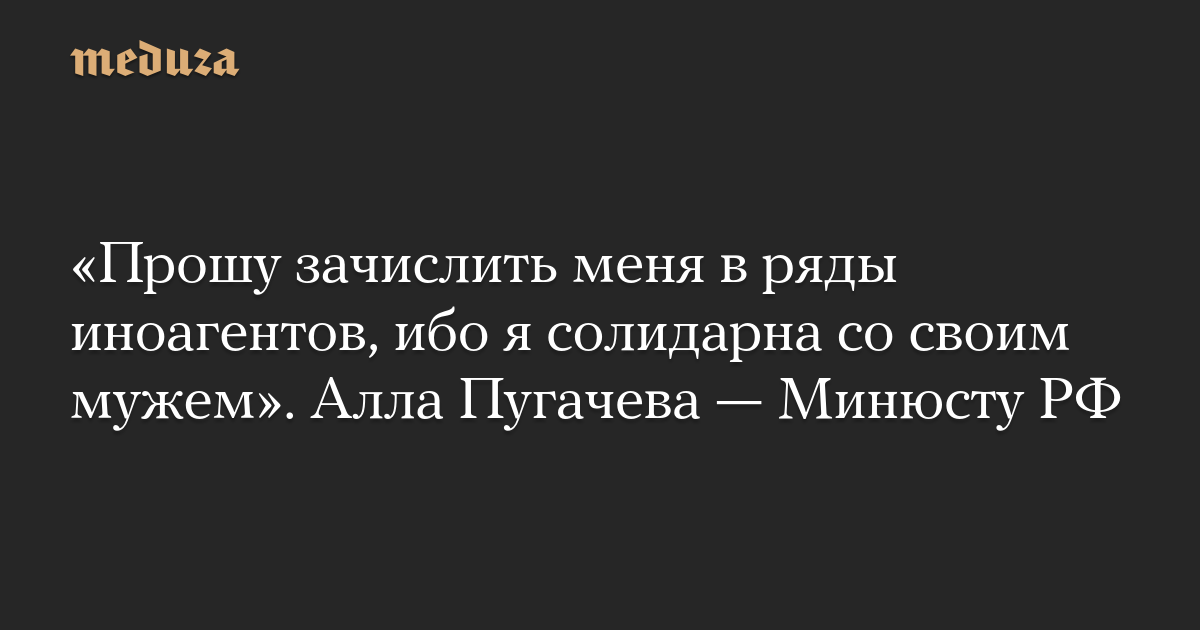 «Прошу зачислить меня в ряды иноагентов, ибо я солидарна со своим мужем». Алла Пугачева — Минюсту РФ