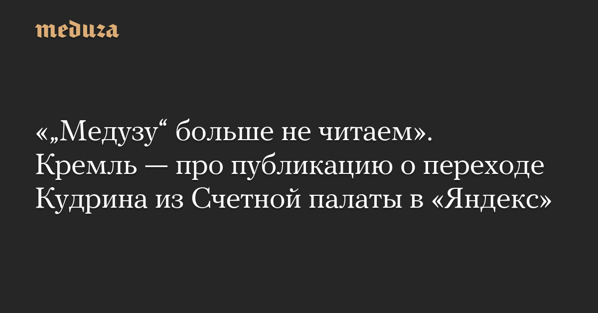 «„Медузу“ больше не читаем». Кремль — про публикацию о переходе Кудрина из Счетной палаты в «Яндекс»