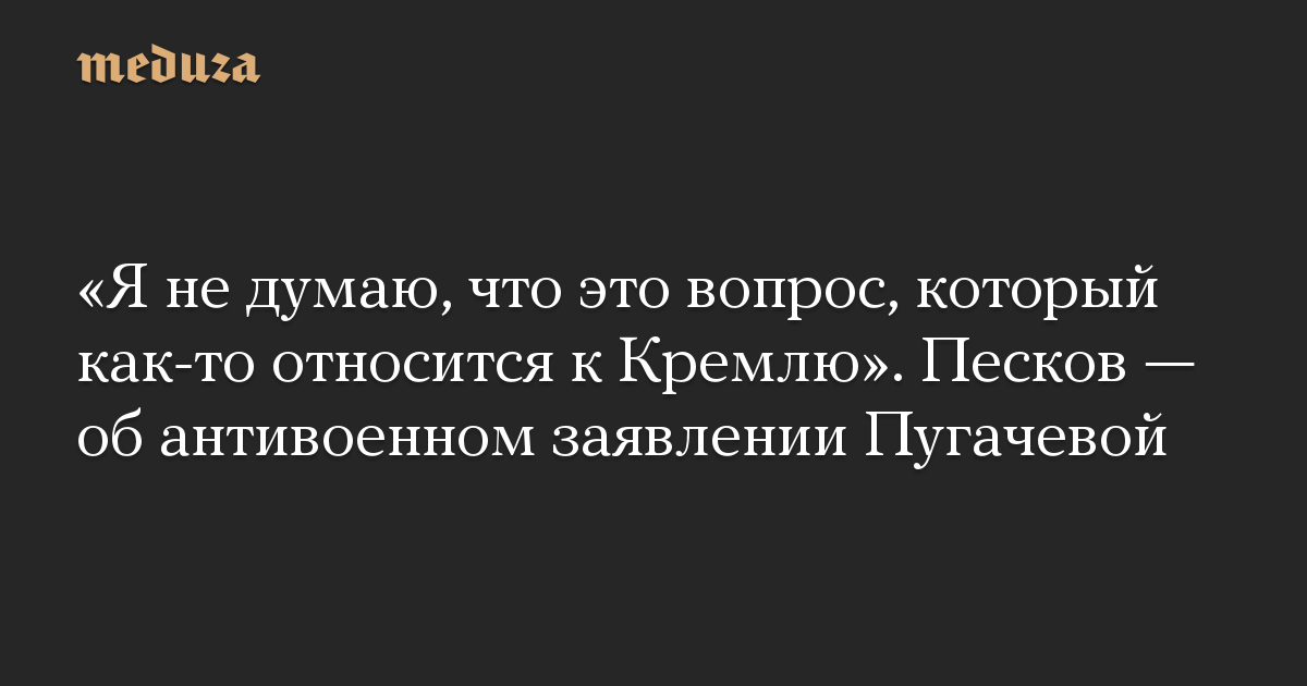 «Я не думаю, что это вопрос, который как-то относится к Кремлю». Песков — об антивоенном заявлении Пугачевой