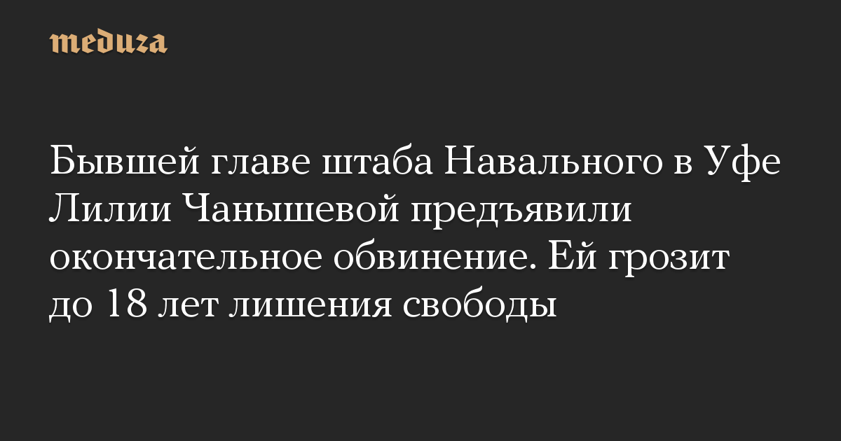 Бывшей главе штаба Навального в Уфе Лилии Чанышевой предъявили окончательное обвинение. Ей грозит до 18 лет лишения свободы