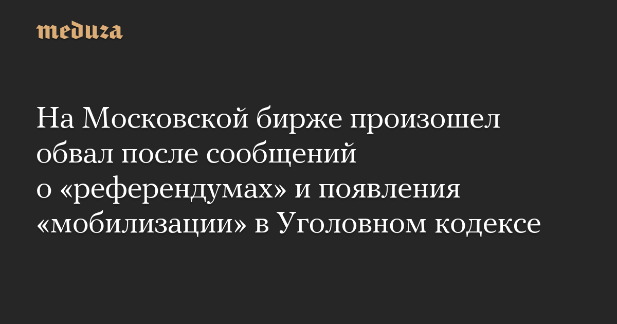 На Московской бирже произошел обвал после сообщений о «референдумах» и появления «мобилизации» в Уголовном кодексе