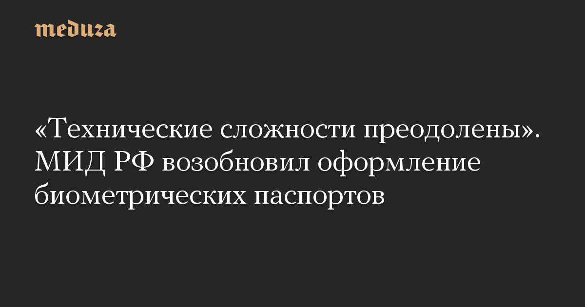 «Технические сложности, приведшие к временной приостановке оформления таких паспортов, преодолены. Приняты дополнительные меры для обеспечения стабильной работы по оформлению и выдаче гражданам Российской Федерации, проживающим за рубежом, паспортов с электронным носителем информации», — говорится в заявлении МИД РФ.