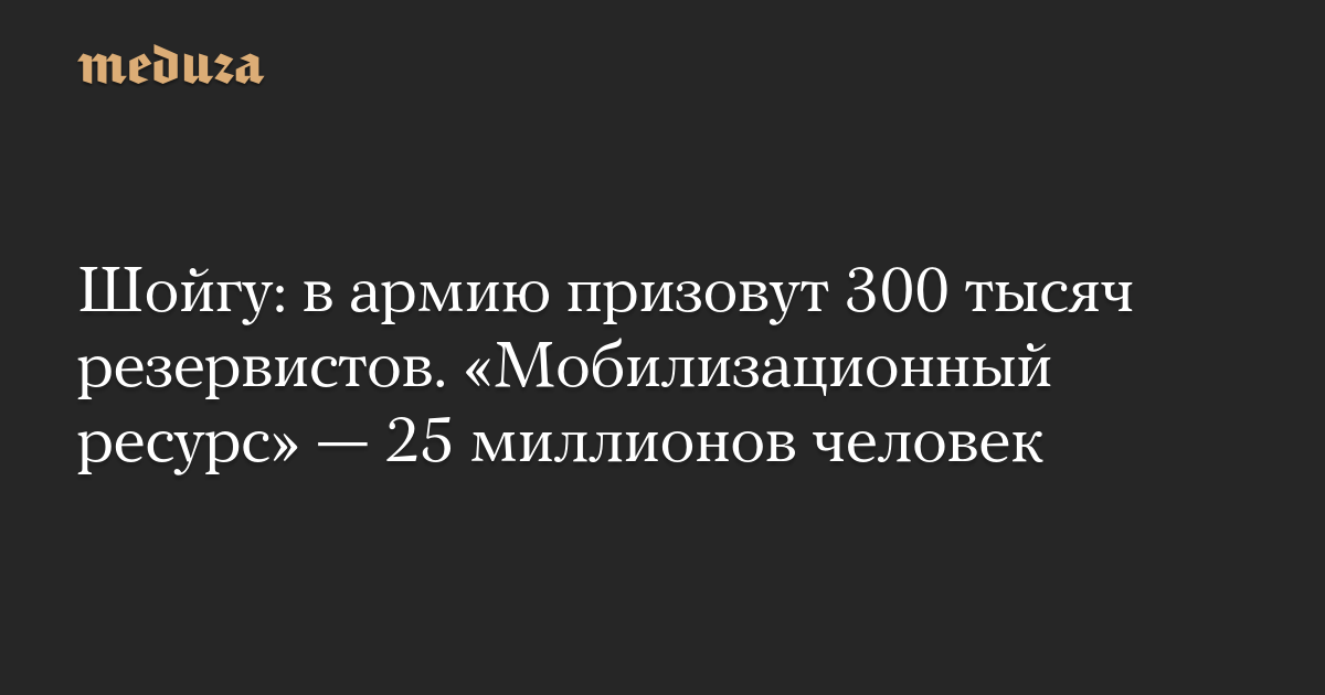 Шойгу: в армию призовут 300 тысяч резервистов. «Мобилизационный ресурс» — 25 миллионов человек
