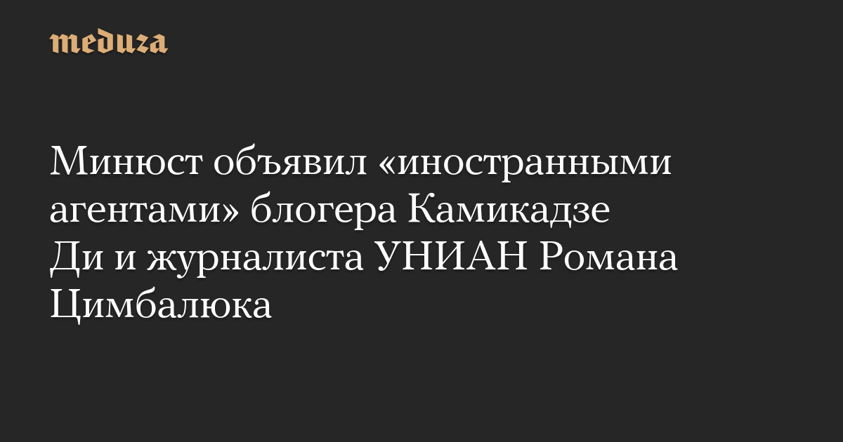 Минюст объявил «иностранными агентами» блогера Камикадзе Ди и журналиста УНИАН Романа Цимбалюка