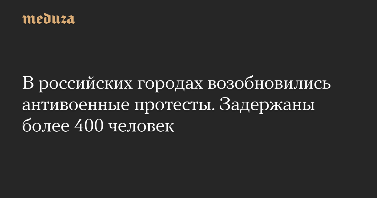 В российских городах возобновились антивоенные протесты. Задержаны более 400 человек