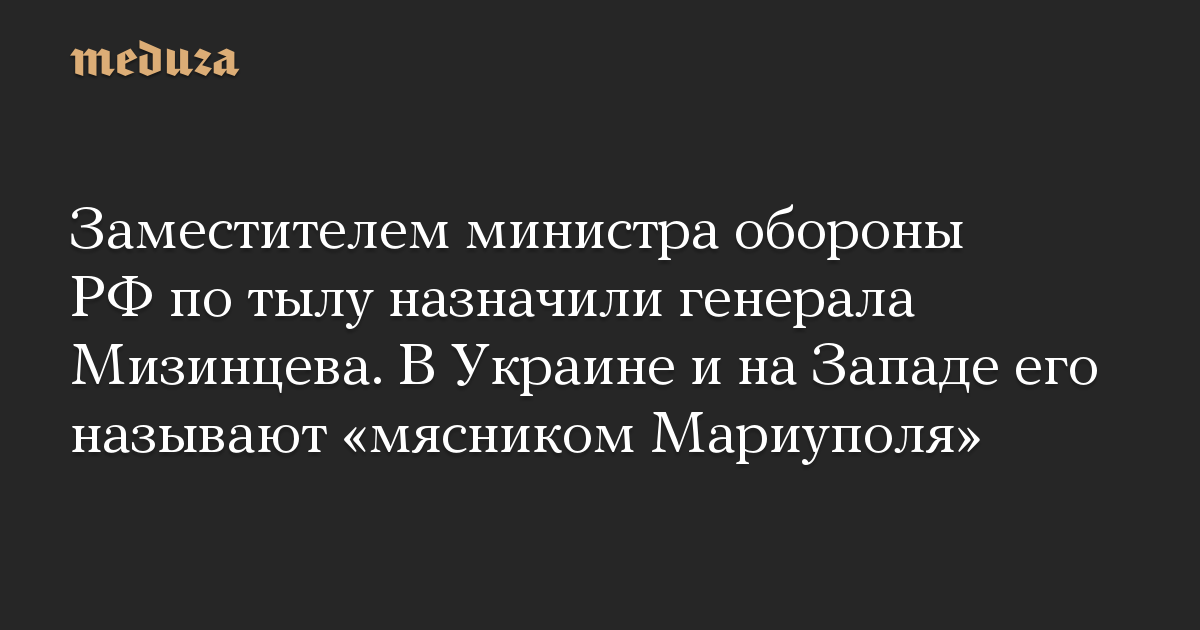 Заместителем министра обороны РФ по тылу назначили генерала Мизинцева. В Украине и на Западе его называют «мясником Мариуполя»
