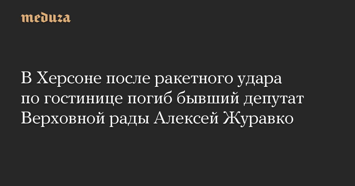Два человека, в том числе бывший украинский депутат Алексей Журавко от «Партии регионов», погибли из-за ракетного удара по центру Херсона утром 25 сентября, сообщает «Интерфакс», ссылаясь на подконтрольные России экстренные службы региона.