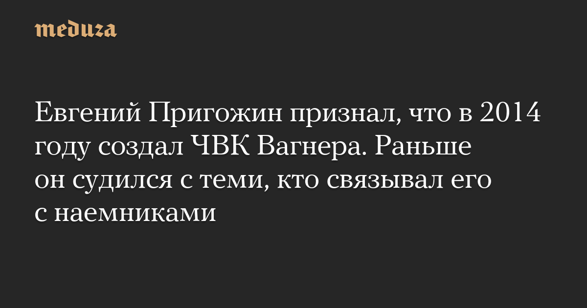 Ранее Евгений Пригожин отрицал свою причастность к ЧВК Вагнера и судился с журналистами, которые связывали его с военизированной группой. В августе 2022 года Пресненский суд Москвы признал недостоверными слова бывшего главного редактора «Эха Москвы» Алексея Венедиктова о том, что Пригожин является «хозяином ЧВК Вагнера».