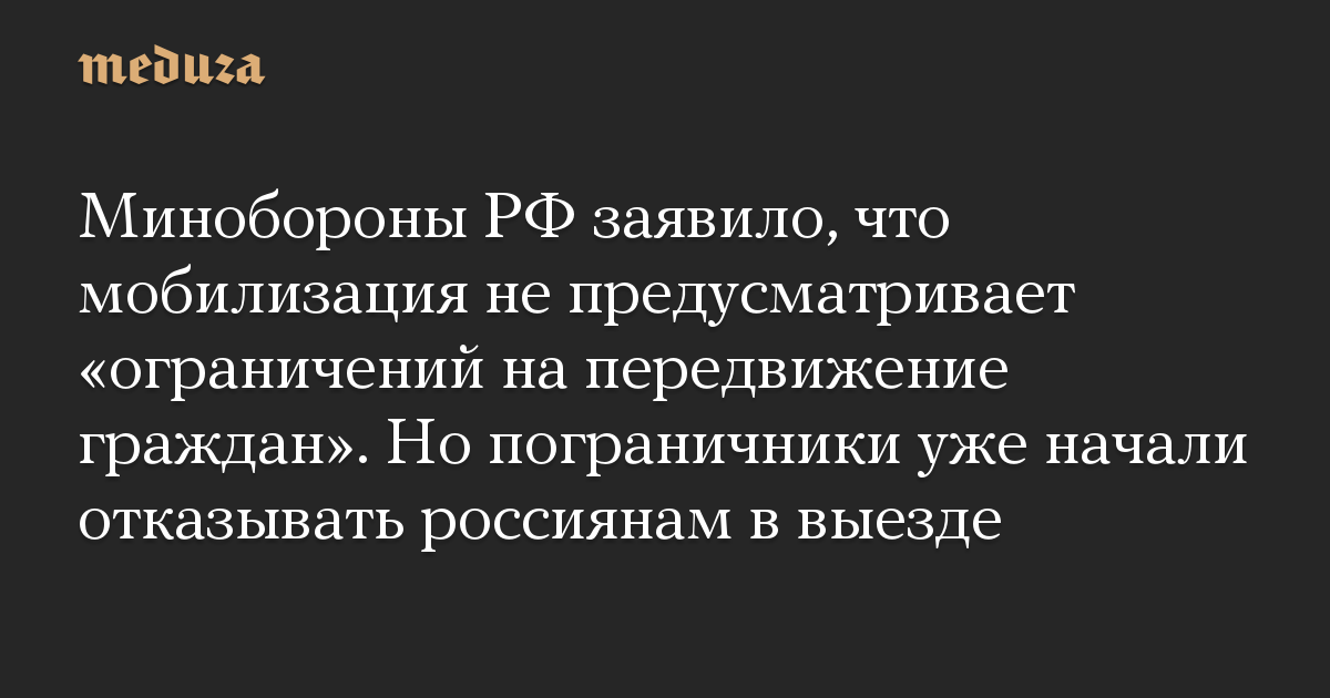 Минобороны РФ заявило, что мобилизация не предусматривает «ограничений на передвижение граждан». Но пограничники уже начали отказывать россиянам в выезде