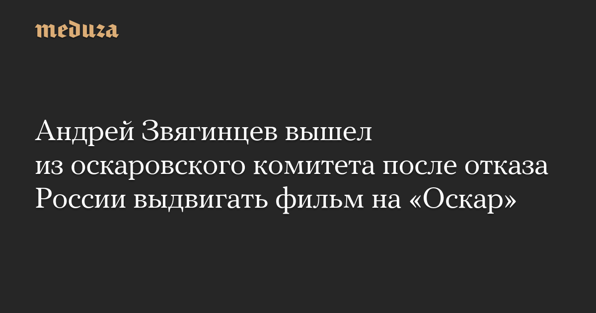 Режиссер Андрей Звягинцев покинул оскаровский комитет после того, как российская Киноакадемия объявила, что не станет выдвигать в 2022 году от страны фильм на соискание американской премии «Оскар». Об этом он сам рассказал «Медузе».