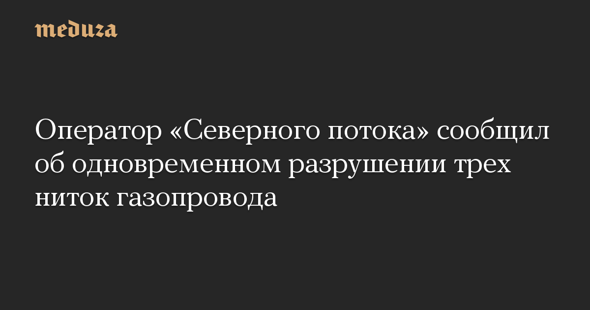 Компания Nord Stream, оператор «Северного потока», заявила об одновременном разрушении трех ниток газопровода.