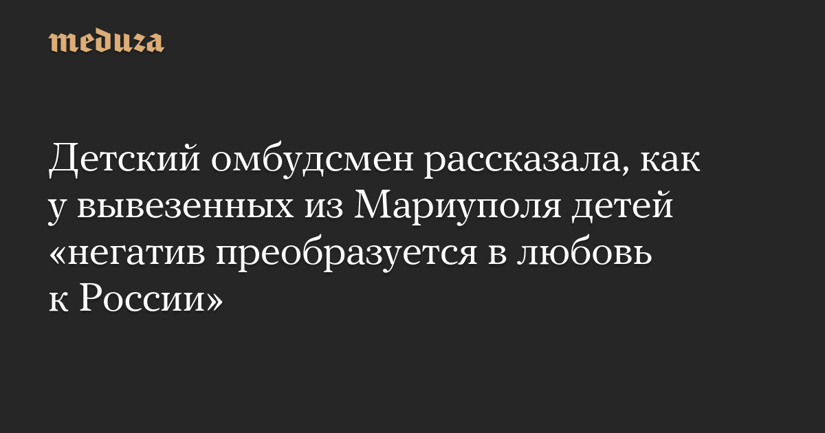 Детский омбудсмен рассказала, как у вывезенных из Мариуполя детей «негатив преобразуется в любовь к России»