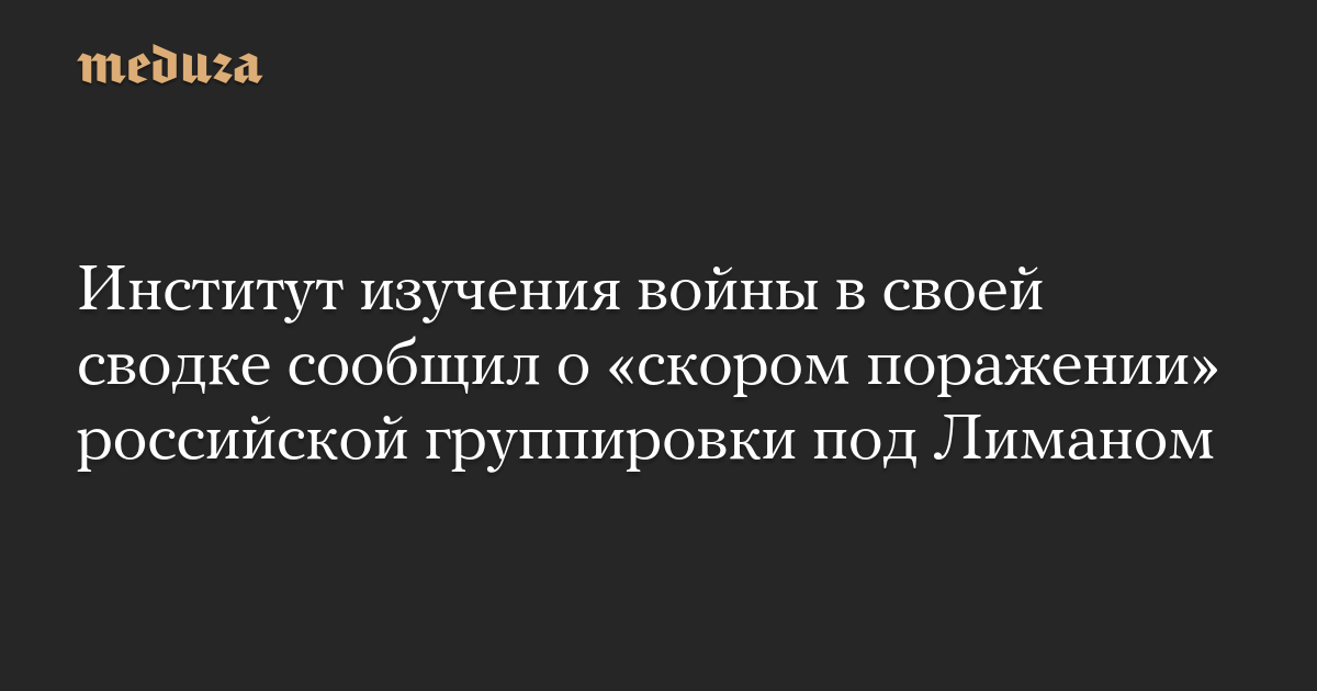 Институт изучения войны в своей сводке сообщил о «скором поражении» российской группировки под Лиманом