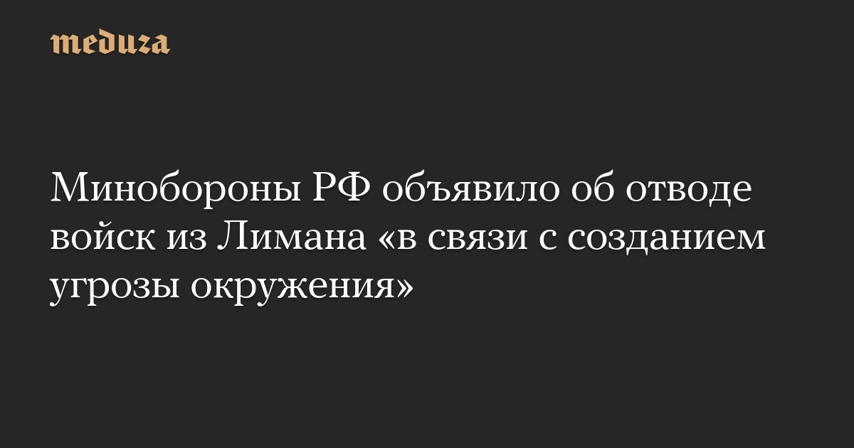 Минобороны РФ на ежедневном брифинге заявило, что «в связи с созданием угрозы окружения» российские войска были отведены из Лимана «на более выгодные рубежи».