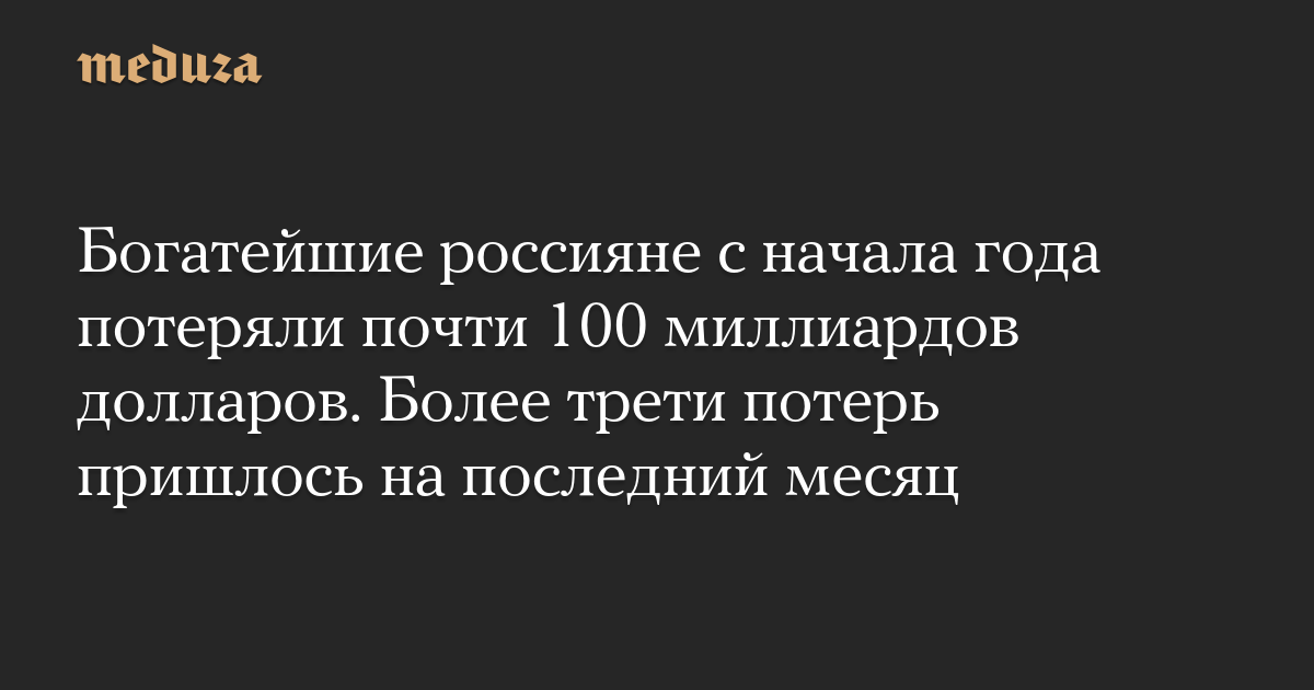 Богатейшие россияне с начала года потеряли почти 100 миллиардов долларов. Более трети потерь пришлось на последний месяц