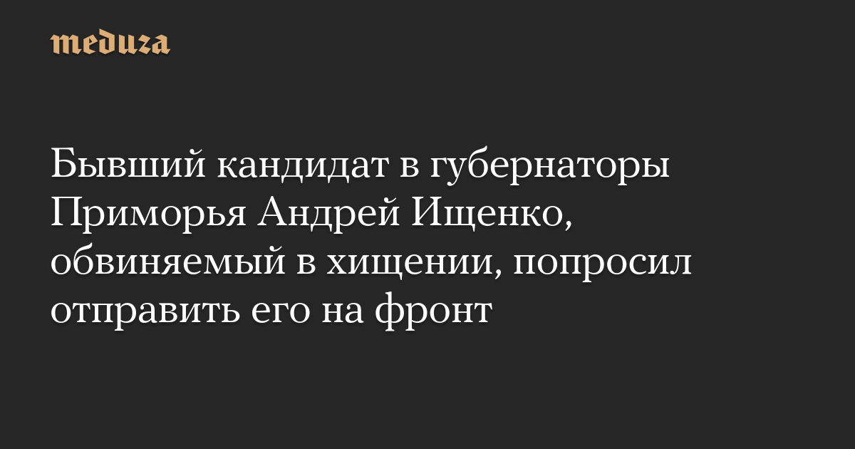 Бывший кандидат в губернаторы Приморья Андрей Ищенко, обвиняемый в хищении, попросил отправить его на фронт